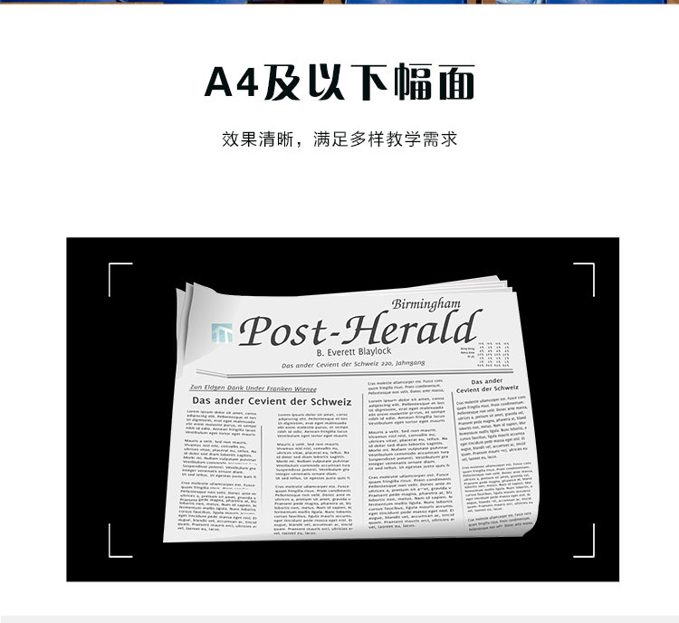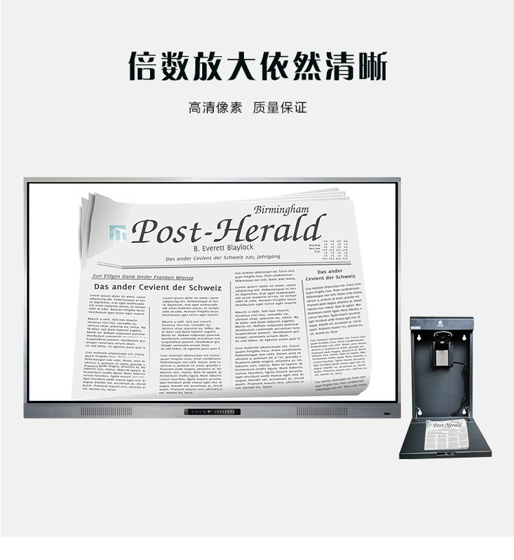 壁掛設(shè)計,采用高清攝像頭,1300萬像素,自帶OCR閱卷功能,支持批注、縮放、旋轉(zhuǎn)、保存分享、拍照等操作,有效提升課堂效率。