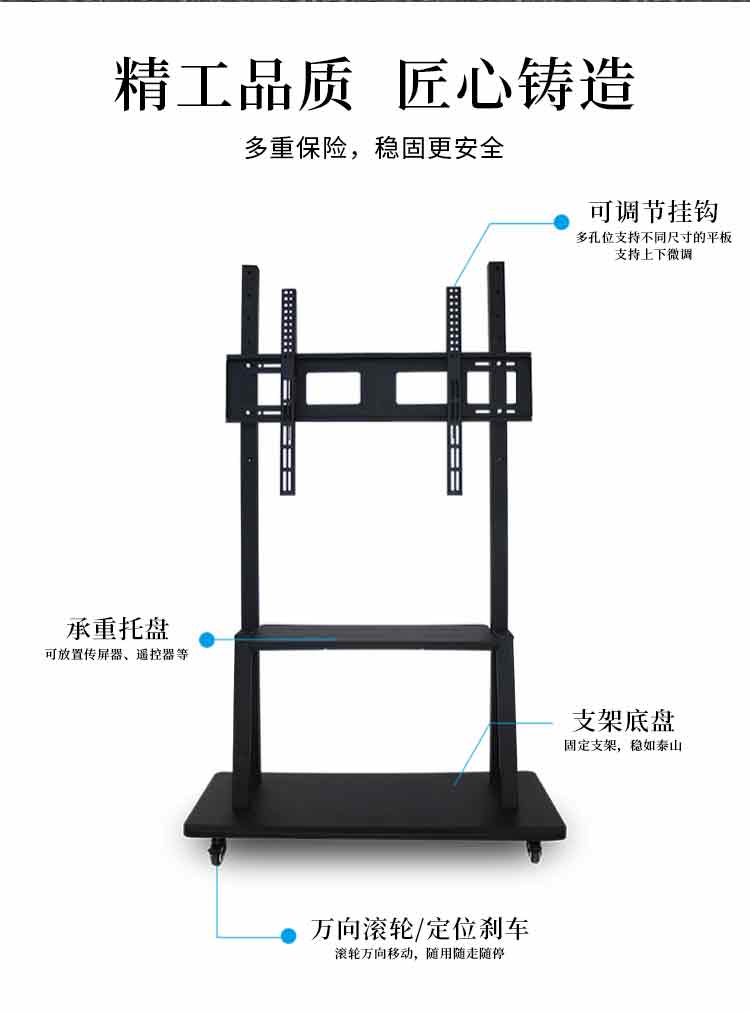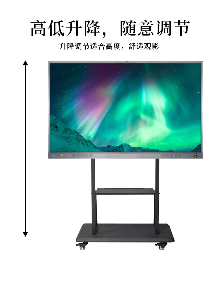 黑色教學(xué)會議移動支架專用液晶電視、廣告機、觸控一體機、電子白板、教學(xué)會議等,高低升降,隨意調(diào)節(jié)。