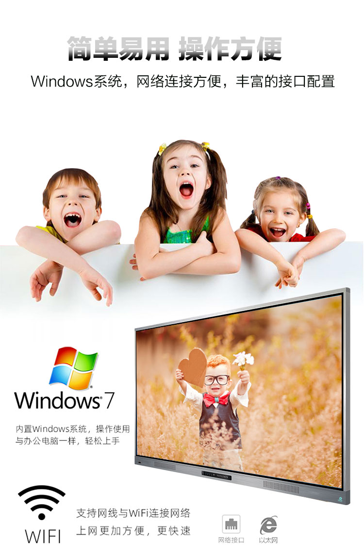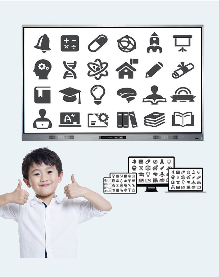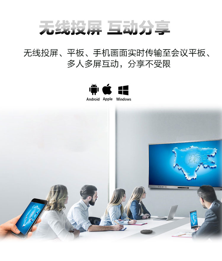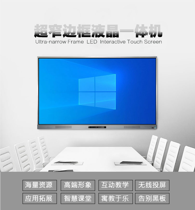 超窄邊多媒體教學一體機-超窄邊框三等邊超窄邊框設計,推拉門鎖保護,4K超高清顯示,以人機交互的方式,搭載互動白板和無線投屏軟件,實現多人書寫、互聯互通的互動教學模式,豐富課堂內容,提高學習氛圍。