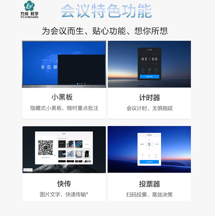 智能會議平板-超窄邊框三等邊超窄邊框設計,推拉門鎖保護,4K超高清顯示,以人機交互的方式,搭載互動白板和無線投屏軟件,實現多人書寫、互聯互通的互動教學模式,豐富課堂內容,提高學習氛圍。